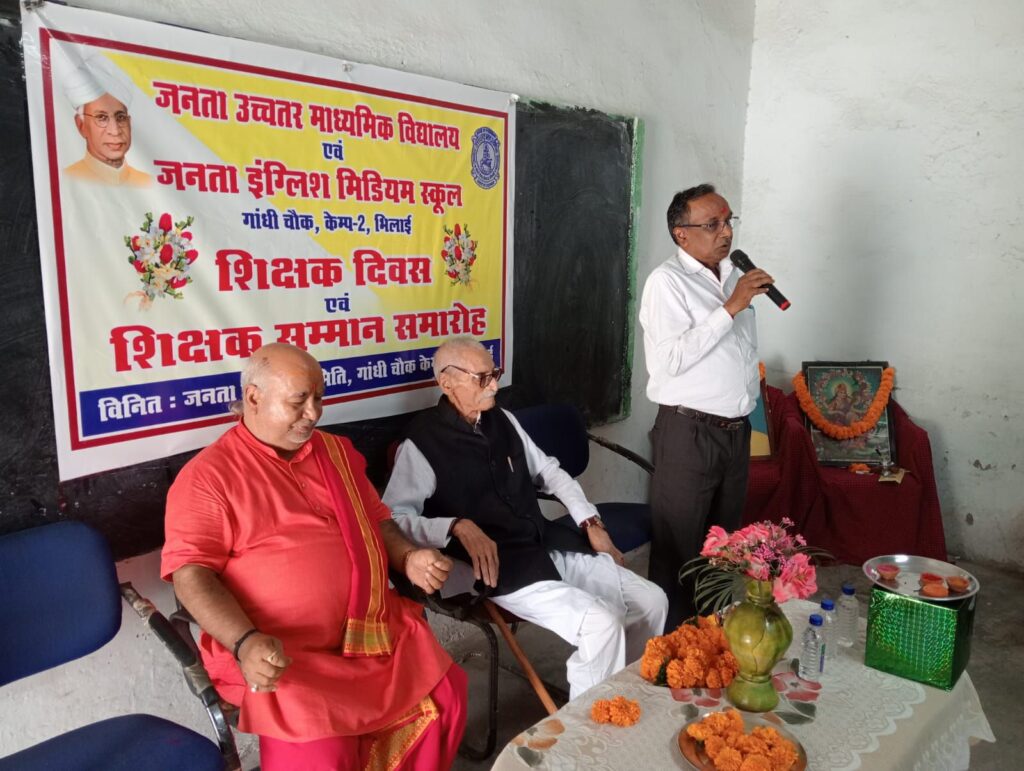भिलाई के जनता उच्चतर माध्यमिक विद्यालय एवं जनता इंग्लिश मीडियम स्कूल मे शिक्षक सम्मान समारोह का किया गया आयोजन